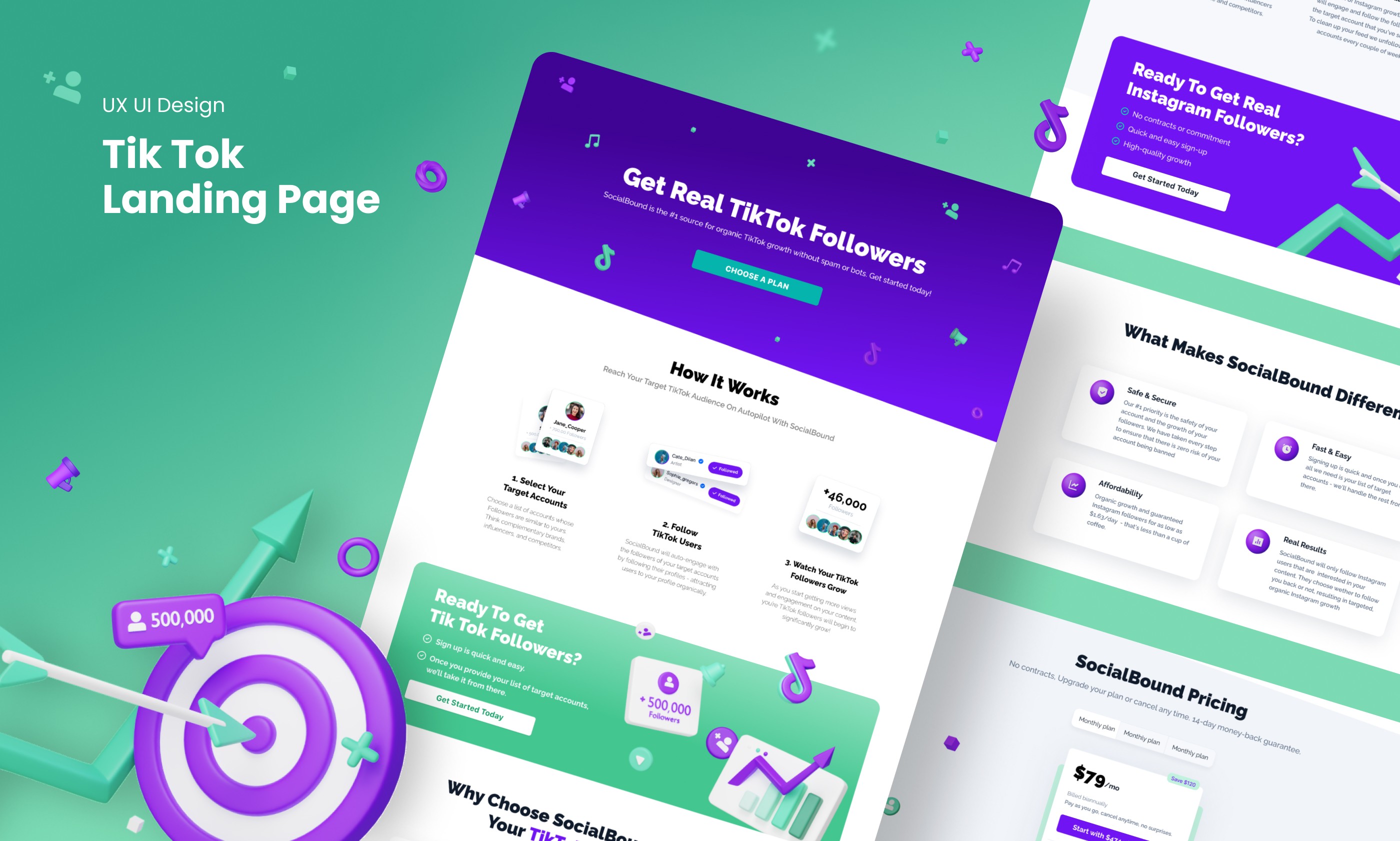 SocialBound se diseñó como una plataforma centrada en el usuario para fomentar el crecimiento real y específico de Instagram para marcas y creadores. El proyecto abarca todo el proceso de UX/UI: desde la investigación de las necesidades de los usuarios y la definición del flujo hasta la creación de prototipos de alta fidelidad, el diseño del sistema y el desarrollo visual final. Cada sección está diseñada para maximizar la claridad, generar confianza y optimizar la conversión, combinando una interfaz atractiva, microinteracciones, modo oscuro opcional y principios de «mobile first». El diseño prioriza la simplicidad y la usabilidad, haciendo que cada paso sea fácil, rápido e intuitivo para los usuarios que desean mejorar sus resultados en las redes sociales.